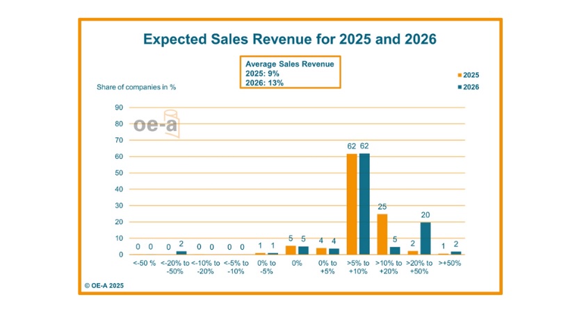 The OE-A released the results of its most recent OE-A Business Climate Survey during the LOPEC press conference on Feb. 26, 2025 in Munich. The outlook for the flexible, organic and printed electronics industry has weakened compared to previous surveys. Growth expectations for 2025 have dropped significantly, with association members now forecasting a 9% increase in revenues – down from the 17% growth expected in the previous survey. “While flexible and printed electronics companies are approaching 2025 with caution, there is evident confidence in long-term growth, particularly in key end-user industries such as consumer electronics, automotive and healthcare,” said Dr. Alain Schumacher, OE-A chairman and CTO of IEE in Luxembourg. “Although the growth forecast for 2025 has softened, companies are taking a strategic approach, emphasizing innovation and long-term investment to overcome economic uncertainties. This forward-looking mindset is reflected in a more optimistic outlook for 2026, with projected growth rebounding to 13%,” Schumacher added. The bi-annual OE-A Business Climate Survey gathers insights from OE-A members across the value chain, including R&D institutes, material suppliers, manufacturers and end users. It provides qualitative data on industry trends, sales growth and market outlook, providing a snapshot of the current state and future direction of the industry. The survey is conducted by OE-A, an international working group within VDMA. The international political and economic situation, particularly the crisis in the automotive industry, and the impact of the new administration in the US prevent better results. More uncertainties are caused by the pending formation of the government in Germany. In the survey, 51% of respondents said they planned to reduce investment in production over the next six months, a significant change from 37% in September. In terms of employment, 89% of members plan to hold current staffing levels, and 10% plan to increase their workforce. An encouraging trend is that 60% of respondents are looking to increase their R&D efforts, up from the previous period. This cautious approach reflects the industry’s adaptation to changing market conditions, as companies prioritize efficiency and long-term stability while managing potential risks in the current economic environment.
