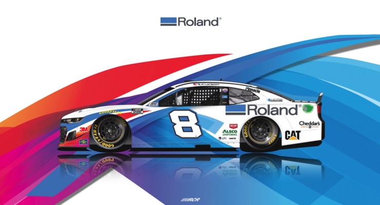 In a nod to its longtime printing partner, RCR included Roland’s logo on Tyler Reddick’s No. 8 Chevy in the April 25, 2015, GEICO 500 NASCAR Cup Series race at Talladega Superspeedway.